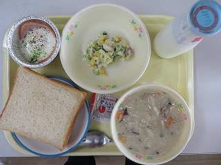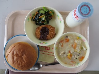 胚芽バンズ コロッケ サラダ きのこシチュー チーズ 牛乳