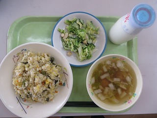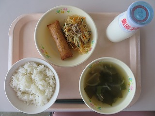 ごはん 春巻き チャプチェ 中華スープ 牛乳