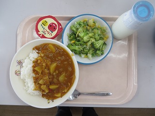 ミルクパン 焼きそば 野菜スープ 豆乳プリン 牛乳