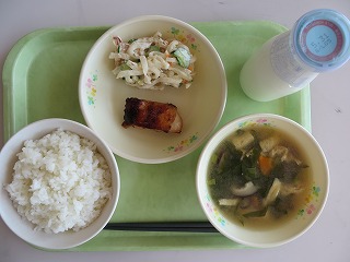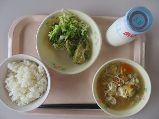 ごはん ささかまの磯辺揚げ サラダ とり野菜 牛乳