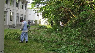 フェンスの草、伸び放題の木々、通学路の外側など普段できない所まで丁寧に