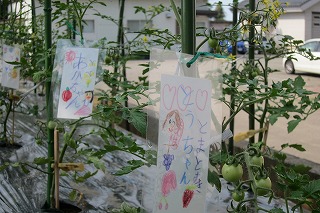 「元気に育ってね」「おいしいトマトになってね」など思いやりが伝わります。