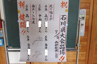 走り幅跳び3名、100m走2名です。玄関前に応援ポスターが掲示されました。