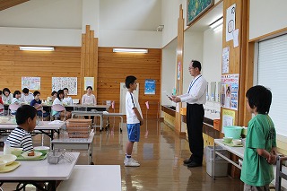おもてなしのための、ご馳走は、山や田でとれた、さといも、きのこ、たいこん、にんじん、豆などと使って料理します。魚は本来尾頭付きを使いますが、給食では、地元のふくらぎを使いました。