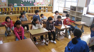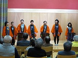 4年生が、「6年生を送る会」で行った「鹿波獅子太鼓」を、穴水の「朱鷺の苑」を訪問し披露してきました。ディーサービスで来られていたおじいちゃん、おばあちゃんの前で堂々と表現できたことはとても素晴らしいです。大きな拍手をもらった4年生の顔は、満足感いっぱいです。 おじいちゃん、おばあちゃんたちも、絶えず声援をおくって下さり、大変喜んでいました。
