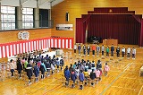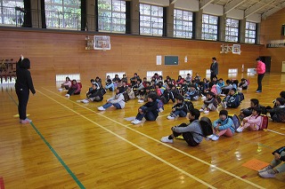 5限終了後、体育館で全児童に下校とバス乗車の指導を行いました。