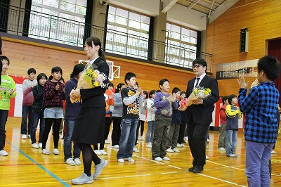 先日,卒業式で6年生を見送ったばかりですが,今日は,離任される先生を見送りました。