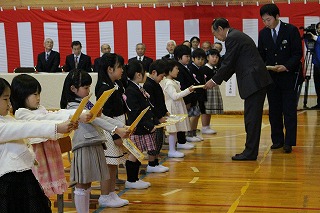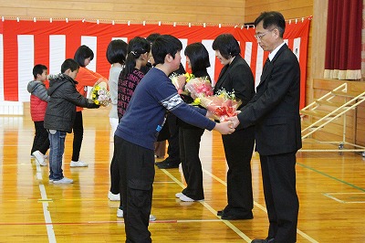 卒業生は、中学校へ行ったら「三つのあ」の精神を忘れず、「熱意」「創意」「誠意」の「三つのい」の精神で、将来の自分作りの3年間にして下さい。