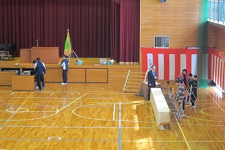 5年生中心に卒業式の会場準備を行いました。本当に頼もしい5年生です!あっという間に会場が完成しました。