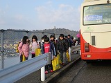 ふるさと教育の一環として、3年生がカキ貝の養殖の様子を見学してきました。