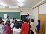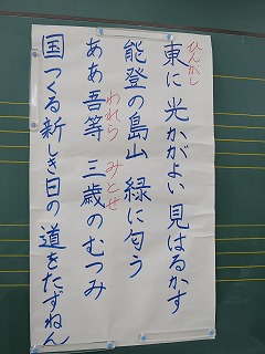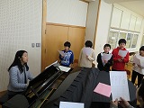 穴水中学校から音楽担当の坂本先生が来校され、6年生に穴水中学校の校歌の歌唱指導をしていただきました。