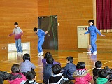 6年生に、なわとびのいろいろな跳び方を教えてもらいました。各二重跳びなど他の学年の子どもたちにはビックリする技ばかりです。