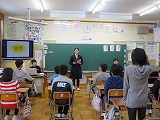 1年生も1か月に一回、エマ先生との交流があります。ゲーム等を通して外国語に慣れ親しんでいます。簡単なヒヤリングはばっちりです。