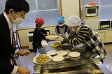 沖波きび加工組合から二人の先生をお招きして,きびだんごを作りました。残念ながら