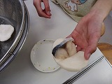 おもてなしのための、ご馳走は、山や田でとれた、さといも、きのこ、たいこん、にんじん、豆などと使って料理します。魚は本来尾頭付きを使いますが、給食では、地元のふくらぎを使いました。