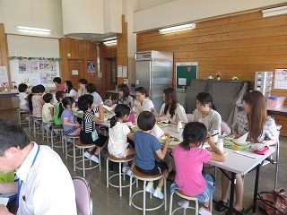 1年生は、お母さんの顔を見ながら食べる給食がとても嬉しそうでした。