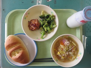 おもてなしのための、ご馳走は、山や田でとれた、さといも、きのこ、たいこん、にんじん、豆などと使って料理します。魚は本来尾頭付きを使いますが、給食では、地元のふくらぎを使いました。