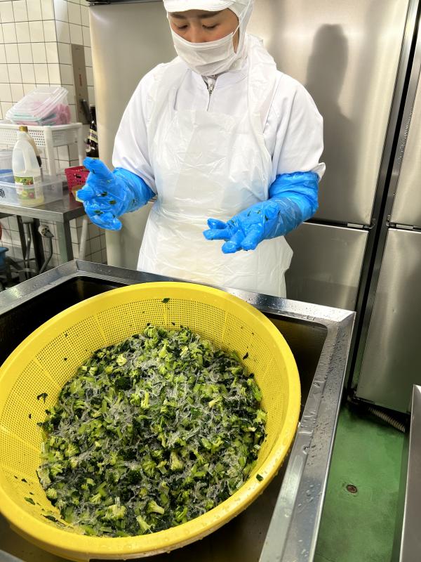 和え物は糸寒天を使ったサラダです。コリっとした食感が残るように茹でるのがポイントです。