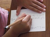 各地区の見守り隊の方々など、日頃お世話になっている感謝の気持ちを、和紙で作られたハガキに書き投函しました。