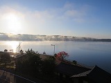 今日は、霜が降りるなどとても寒い朝になりました。中居湾では、朝日に照らされ気嵐(けあらし)が立っています。朝の街頭指導時に、何人かの子どもたちが「あの煙みたいの何?綺麗やね!」と聞いてきました。中居湾の素晴らしい景色に心を寄せる子どもたちがいることにも感動です。