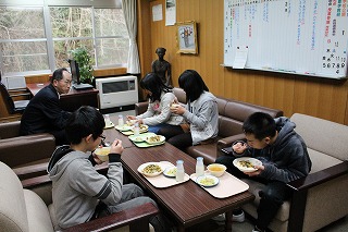 もうすぐ卒業する6年生と校長先生とのふれあい給食が始まりました。