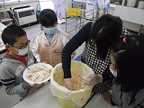 5年生は、試食を済ませたあと、お持ち帰りの分の準備をしました。