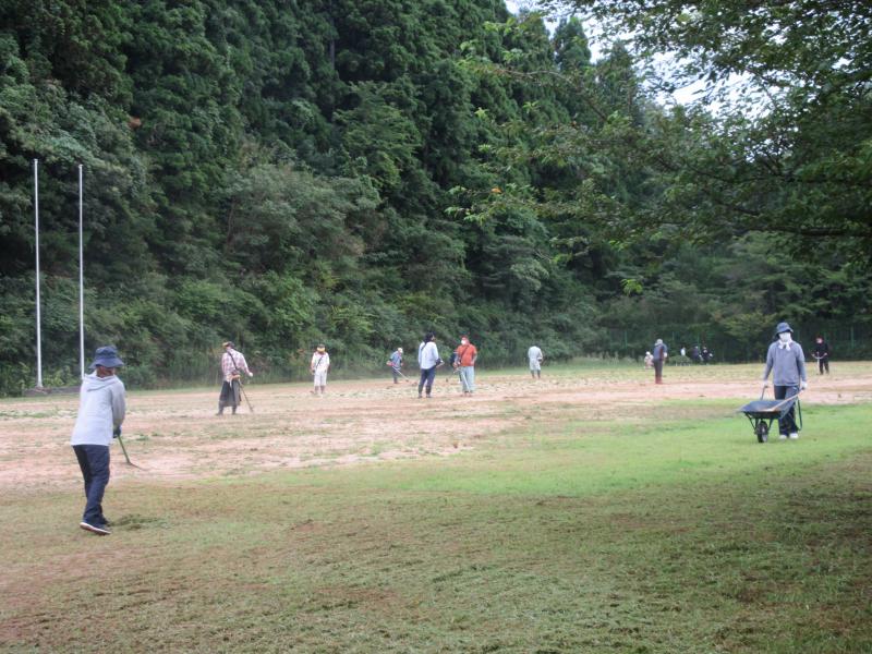 また、1時間半ほどの作業後にも、小泉事業委員長さんのボランティアを募る呼びかけに応じ、更にそこから1時間以上も残って草刈り機を動かしてくださった皆さん、ありがとうございます。きれいになった運動場で運動会練習をすることができます。