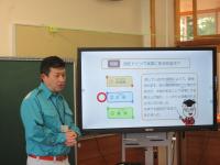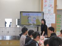 毎月、子ども達が給食を食べている時間を利用して、栄養教諭から給食指導を行っています。