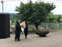 人形遣いカンパニー「木偶舎」さんによる人形浄瑠璃が、玄関前の自然豊かな借景を舞台に行われました。3人で一体の人形を操るのですが、人形の手の先から瞼の動きにまで心が表れており、まるで生きているかのように感じました。