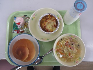 ミルクロール ラザニア コンソメスープ ミニケーキ 牛乳