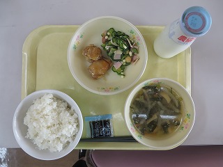 ごはん いかのカリン揚げ おひたし みそ汁 牛乳