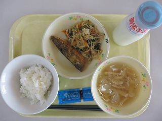 おもてなしのための、ご馳走は、山や田でとれた、さといも、きのこ、たいこん、にんじん、豆などと使って料理します。魚は本来尾頭付きを使いますが、給食では、地元のふくらぎを使いました。