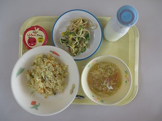 シーチキンチャーハン コンソメスープ ジャーマンポテト 牛乳