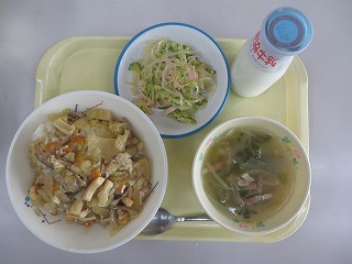 中華丼 中華スープ 春雨サラダ 牛乳
