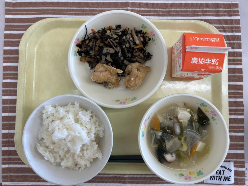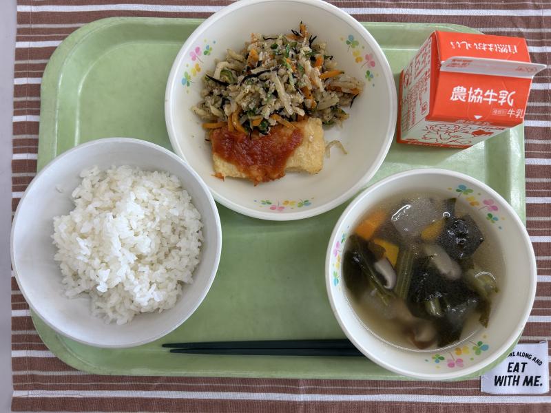 ひじきの炒め煮は、少し量が多くなってしまいましたが、れんこん・油揚げ・こんにゃくなどいろいろな食材のうまいが出て、とてもおいしかったです。
