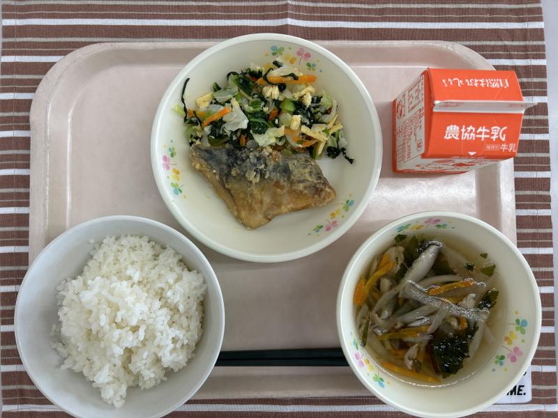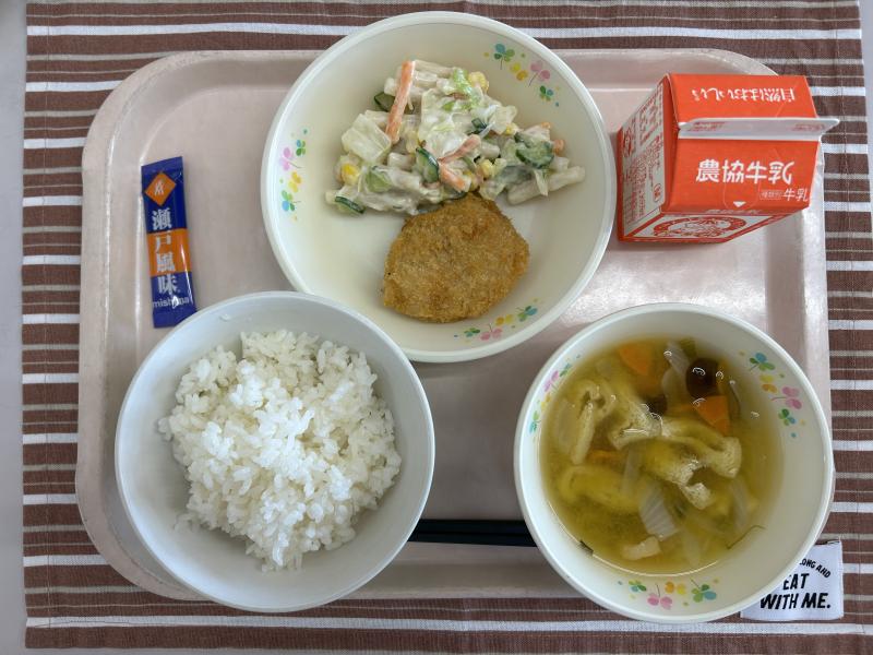汁物には、かぼちゃやしめじが入っています。まだまだ暑い日が続きますが、献立は少しずつ秋に近づいています。