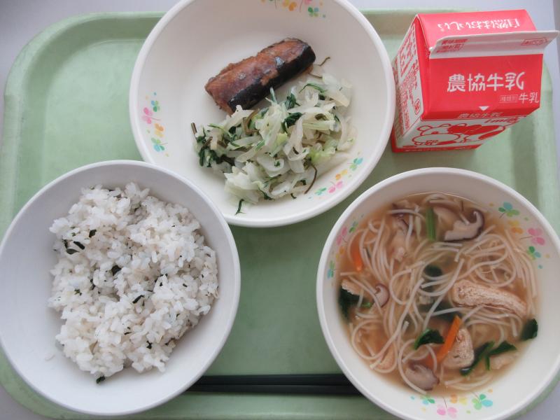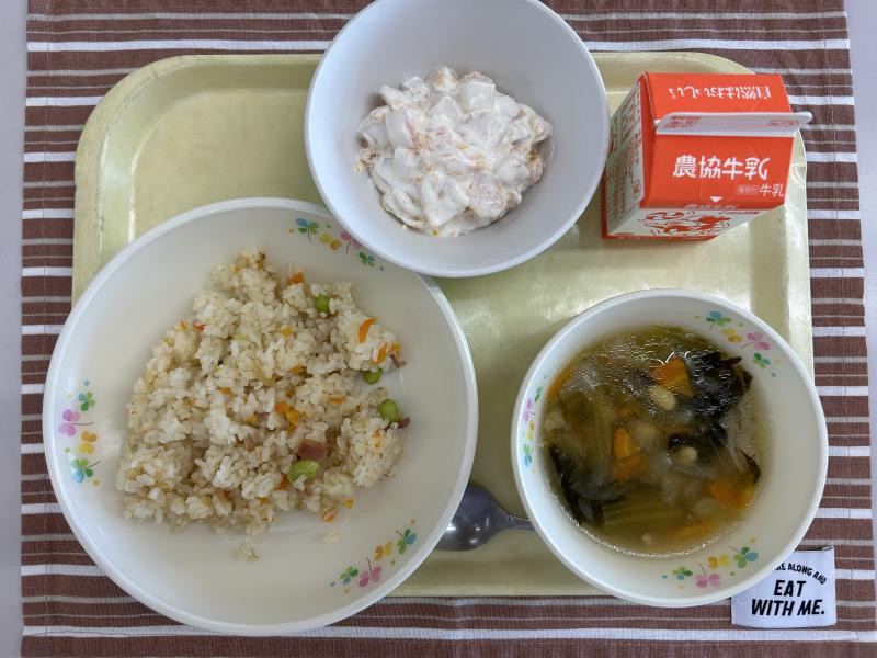 汁物は、かもうりのスープです。食べなれていないのか不思議そうに「これ何?」という声が聞こえてきました。味がしみ込んでおいしかったです(^^)