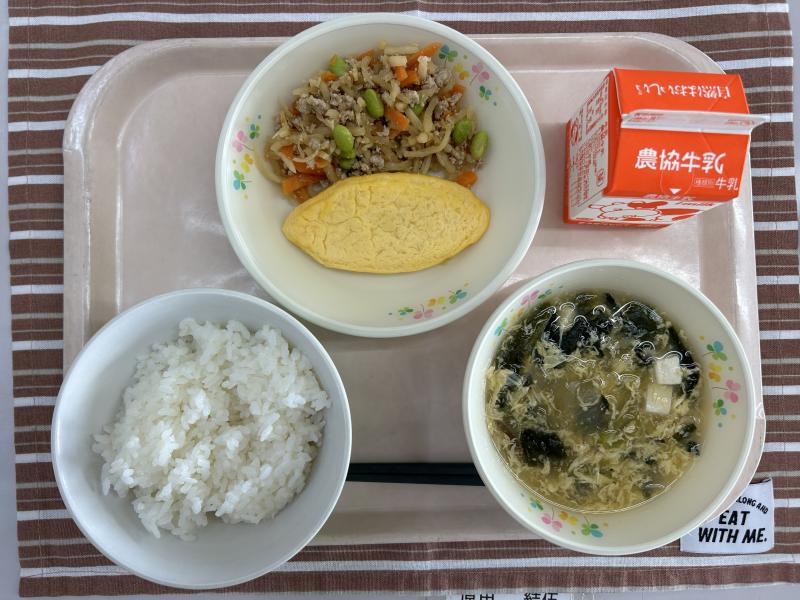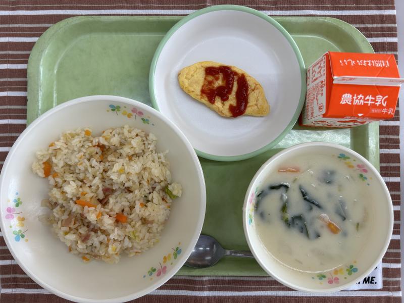 今日は急遽メニュー変更することになってしまい、申し訳ありません。主菜にも汁物にもたまごが入るというイレギュラーな給食になってしまいましたが、子どもたちはそんなことな気にせず、ごはんにミートソースオムレツを乗せて、「オムライスや!」と喜んで食べてくれました。