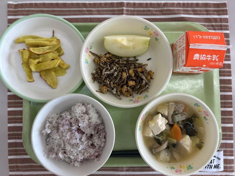 今日の特別メニューは、1.2年生が生活科で作ったさつまいもを使った大学いもです。通常の作業プラス特別に調理員さんが作ってくれました。味付けは、バターと塩とはちみつです。とってもおいしく仕上がりました。