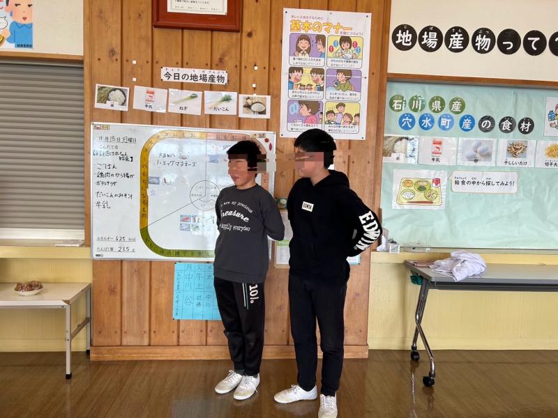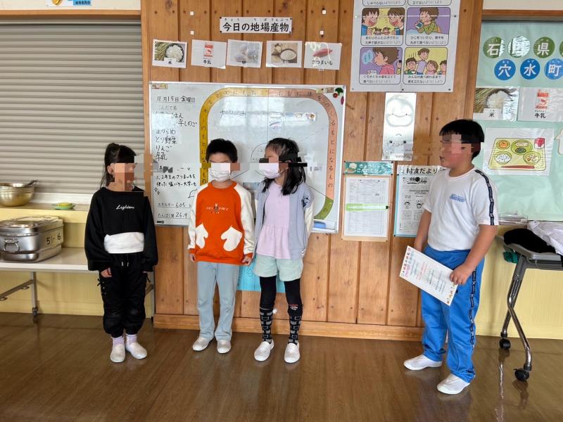 いただきますの前には、1.2年生の代表の子が前に出て、さつまいもの紹介をしてくれました。