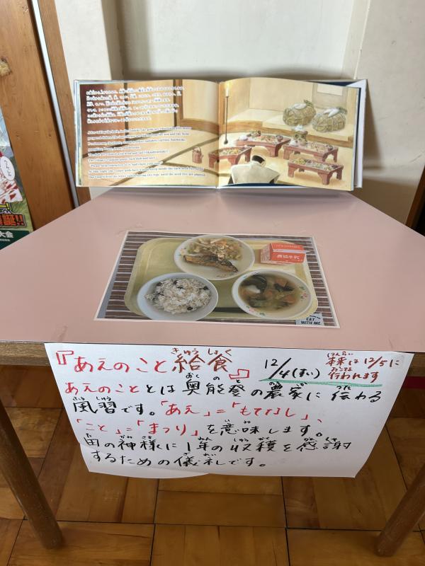 今日は、「あえのこと給食」です。あえのことは、田の神様が1年間田んぼを守ってくれたことに感謝し、おもてなしするために行われます。