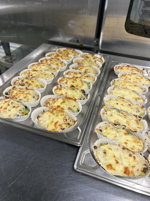今日はマカロニグラタンを作りました。たまねぎや鶏肉、ブロッコリー、しめじが入っています。ホワイトルウは米粉で作ります。調理場内はチーズの香ばしい匂いが漂っていました!子どもたちからも「グラタンおいしい!」ととても好評でした\(^o^)/