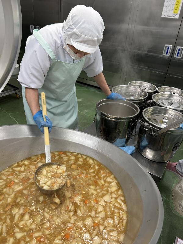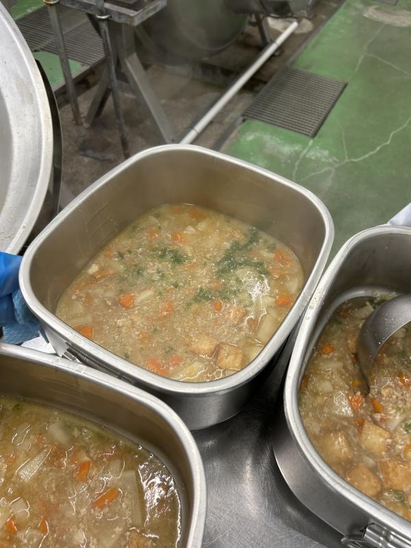 ピリ辛豚汁は穴水町の定番メニューです。いつもの豚汁にキムチを少し入れてピリ辛に仕上げています。低学年の子どもたちにも食べやすいように仕上げています。