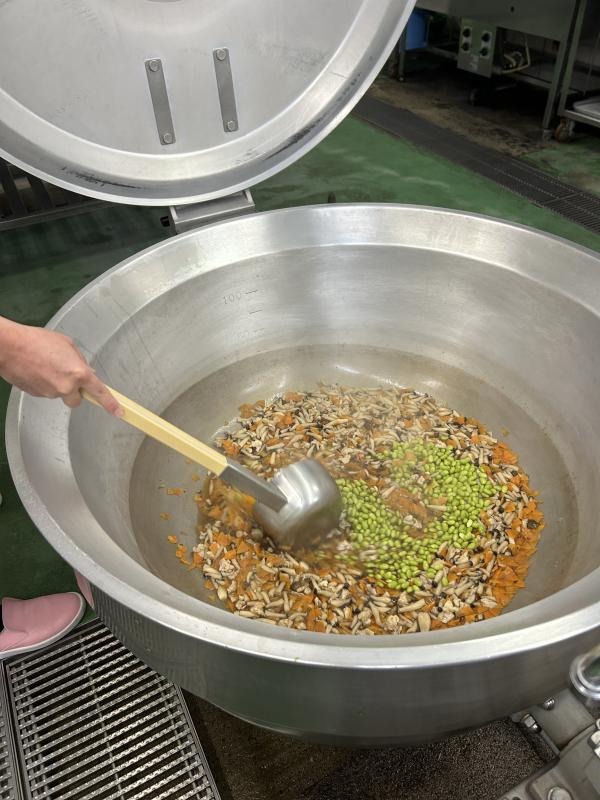 鶏肉、しめじ、にんじん、枝豆入りで彩りもきれいに仕上がりました。