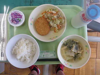 おもてなしのための、ご馳走は、山や田でとれた、さといも、きのこ、たいこん、にんじん、豆などと使って料理します。魚は本来尾頭付きを使いますが、給食では、地元のふくらぎを使いました。