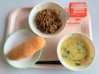 コッペパン、ソース焼きそば、華風コーンスープ、牛乳