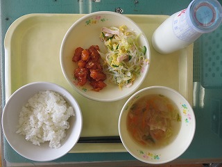 ごはん イカチリ シルバーサラダ コンソメスープ 牛乳