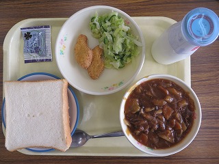 食パン ビーフシチュー チキンナゲット サラダ ジャム 牛乳