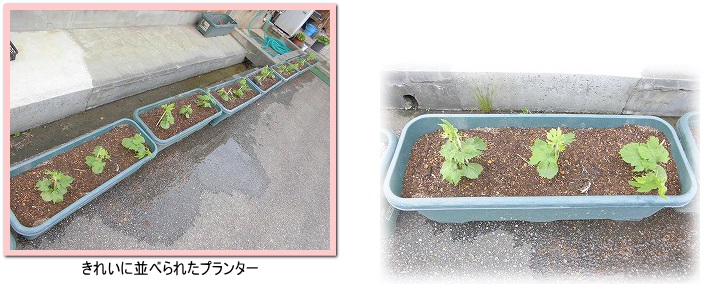校務員さんが、プランターにさっそく植えて、準備完了です。
