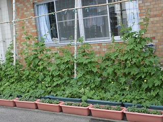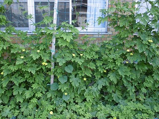 グリーンカーテンも大きくなってきました。 緑色が涼しく感じさせます。